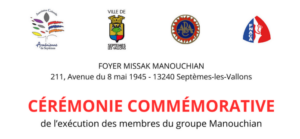Dans le cadre de la commémoration de l’exécution des membres du groupe Manouchian, l’ACFOA Septèmes vous invite à 2 évènements à Septèmes-les-Vallons.