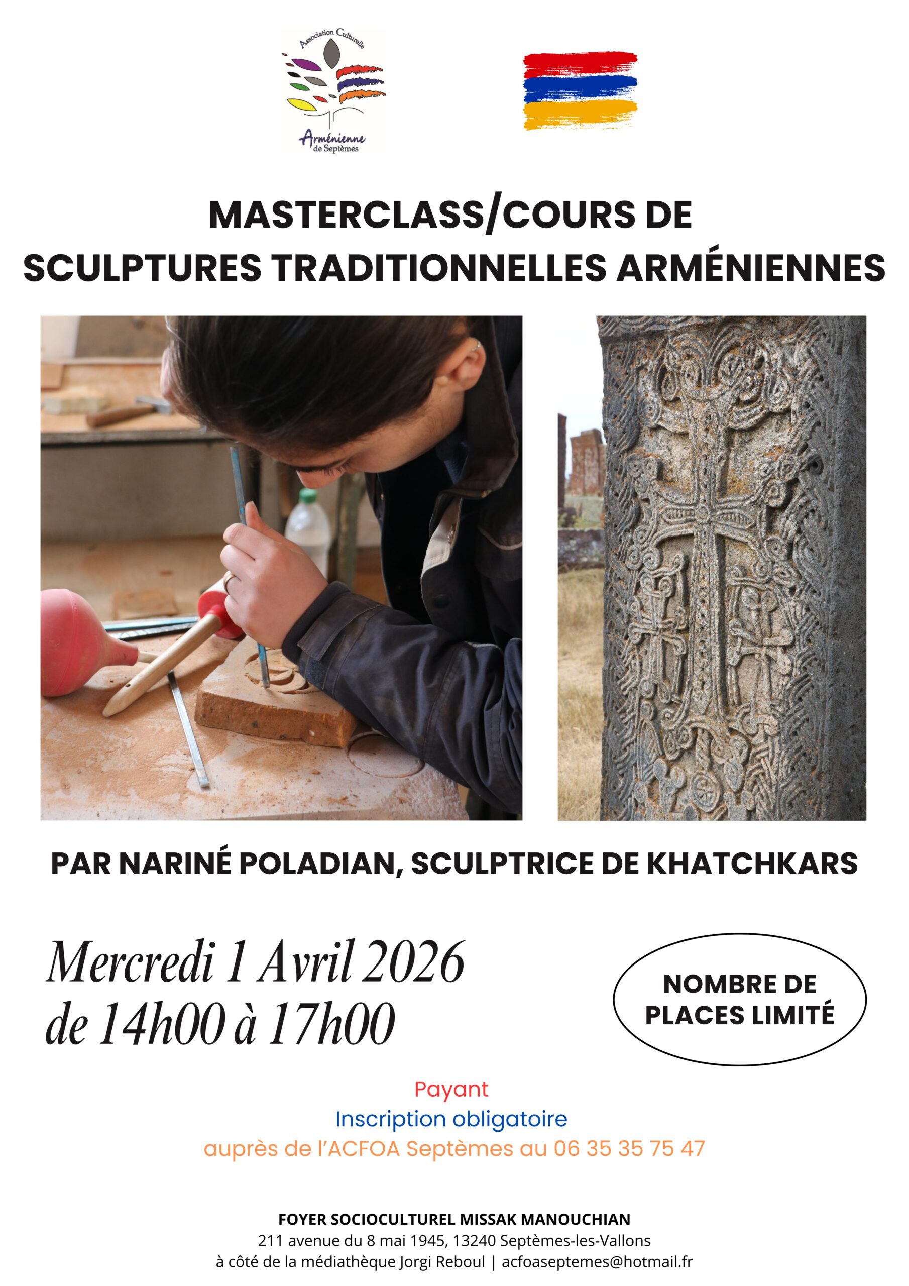 L’Association Culturelle des Français d’Origine Arménienne (ACFOA) vous invite à un cours sur les sculptures traditionnelles arméniennes.