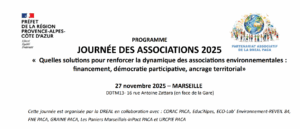 Cette journée est organisée en collaboration avec nos têtes de réseaux associatifs sur le thème : «Quelles solutions pour renforcer la dynamique des associations environnementales : Financement, démocratie participative, ancrage territorial».
